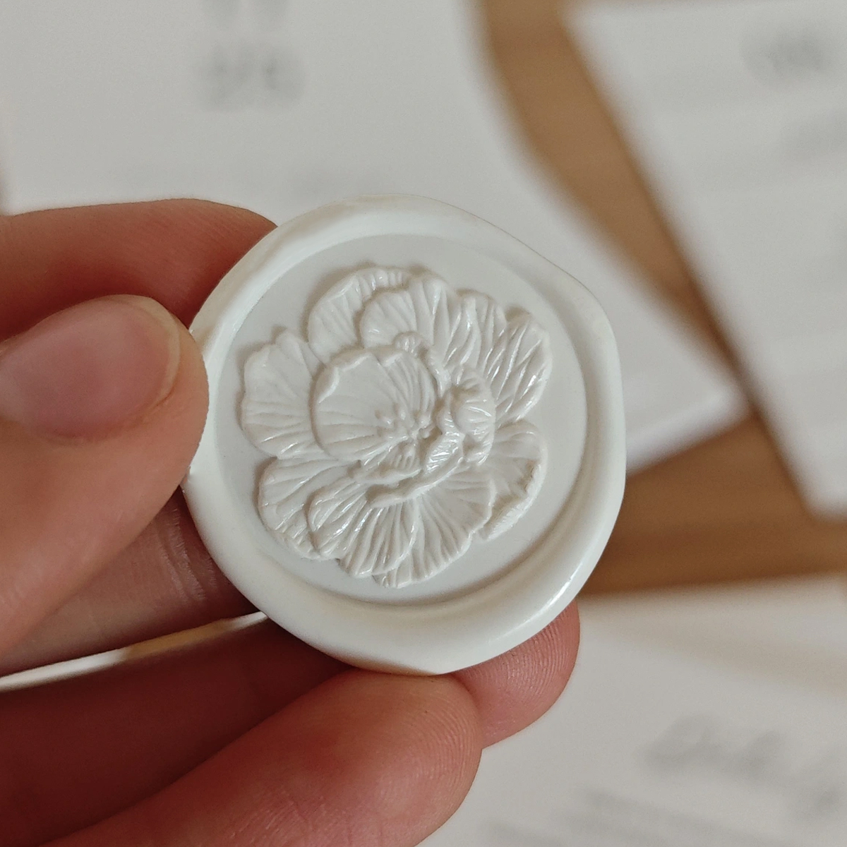 Hotové pečate z pečatného vosku. Pečate majú zo zadnej strany nálepku, ktorú jednoducho odlepíte a nalepíte pečať napr. na obálku.
