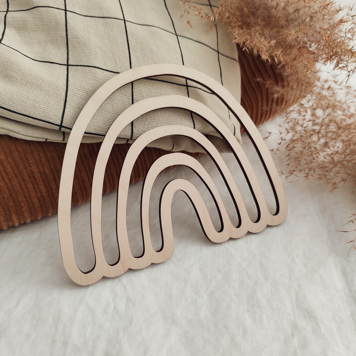 Dekorácia do detskej izby v tvare dúhy vyrobená z kvalitnej preglejky hrúbky 4mm s prírodným hladkým povrchom.