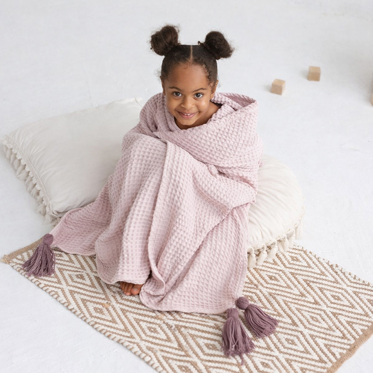 Štýlová a praktická wafle deko-osuška, ktorá má vynikajúce absorbčné vlastnosti. Môžu využiť deti aj dospelí nie len pri letných dobrodružstvách, ale aj namiesto klasického uteráku v kúpeľni, či ako letnú deku na terase alebo v obývačke. Osuška je v každom rohu zdobená ručne viazanými strapcami a je príjemne mäkká a praním sa stáva ešte jemnejšou.