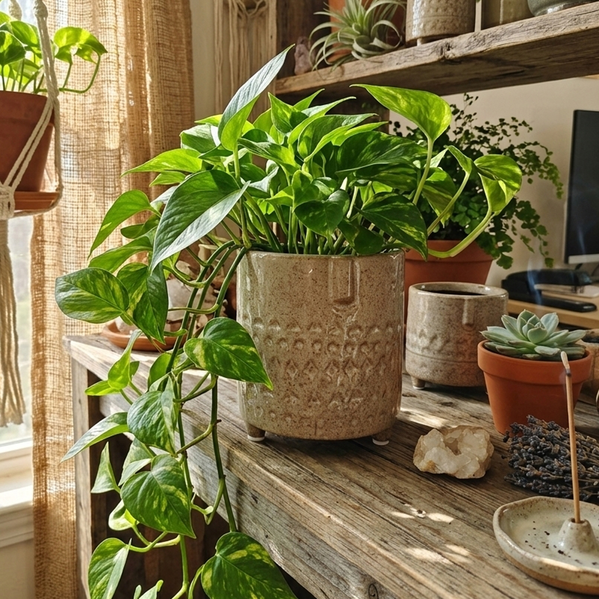 Tmavošedý kvetináč v boho štýle s motívom tváre bude ideálny na malý kaktus alebo sukulent.