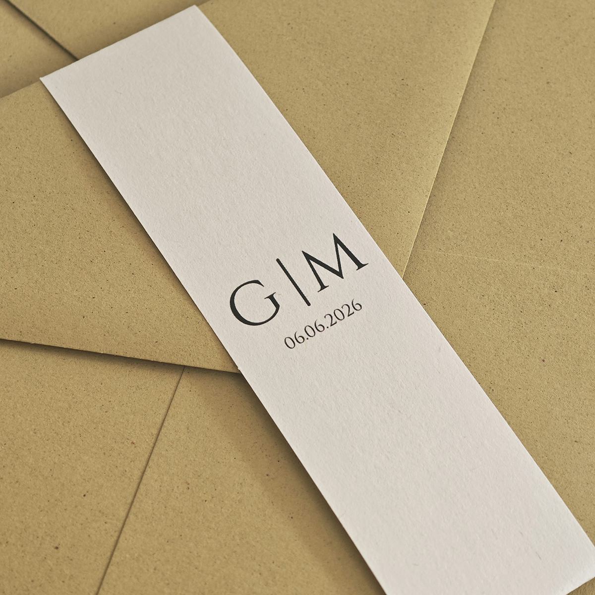 Pásik na obálku vyrobený z recyklovaného papiera s čiernym textom.