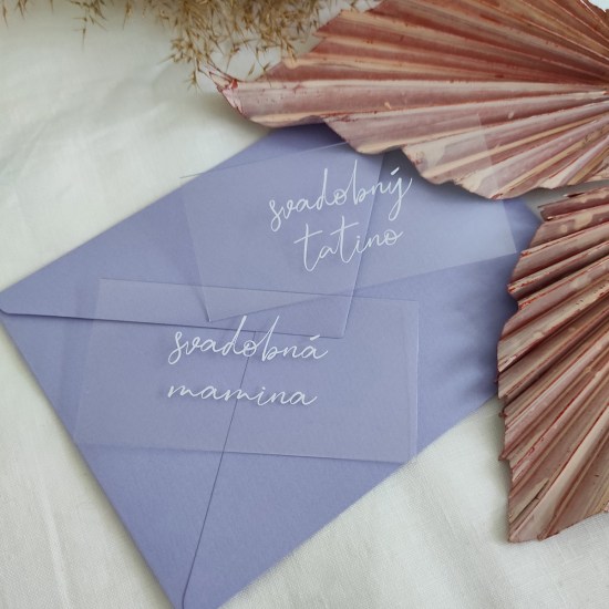 Jednoduchá a zároveň veľmi štýlová a moderná transparentná menovka robená k našim oznámeniam Luxury white, ale samozrejme si ju môžte kúpiť aj samostatne. Menovky sú tlačené bielou UV tlačou na transparentné plexi. Vďaka UV tlači je text mierne vystúpený, akoby 3D. Farba textu sa dá zmeniť.