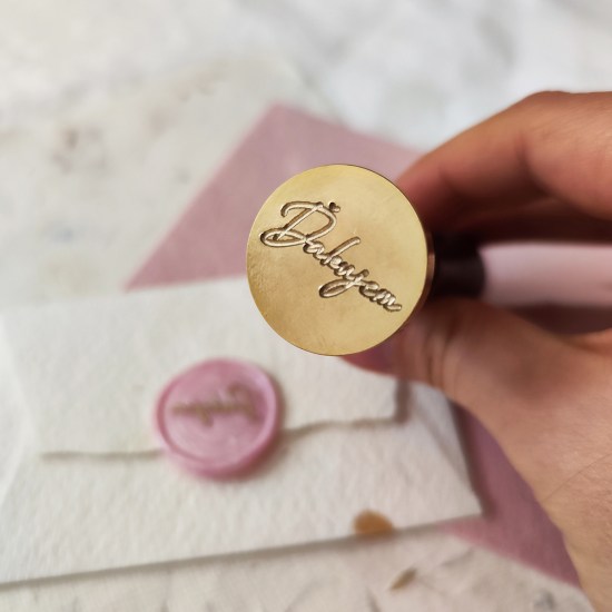 Originálne mosadzné pečatidlo vyrobené v našej dielni. Pečatidlo je dodávané s drevenou rukoväťou a snímateľnou hlavou na závit.