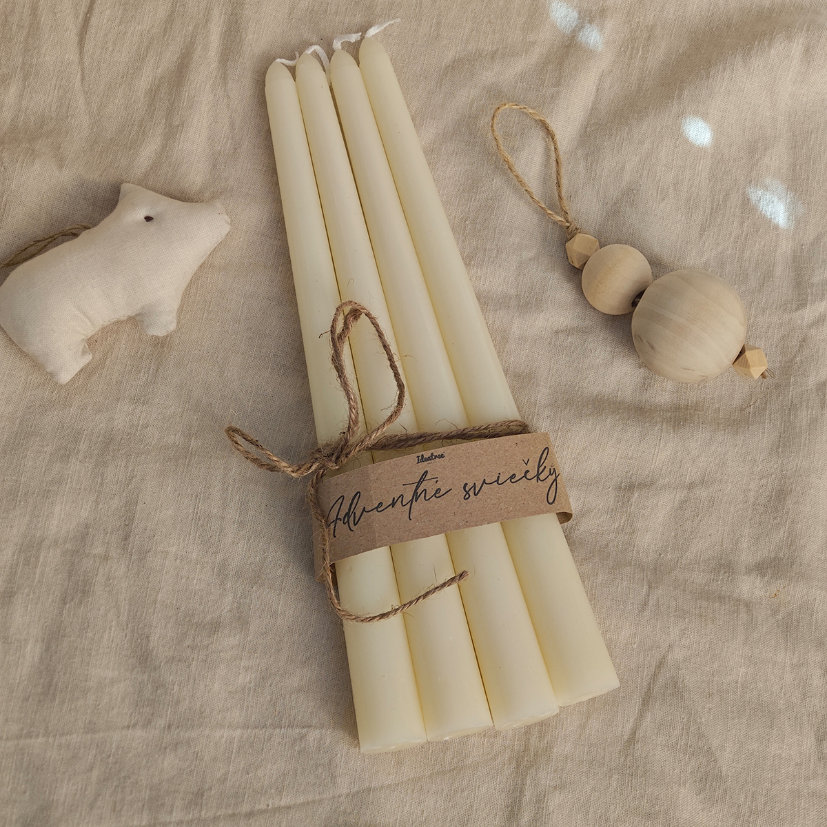 Dlhé zúžené adventné sviečky vhodné do adventných vencov a svietnikov.