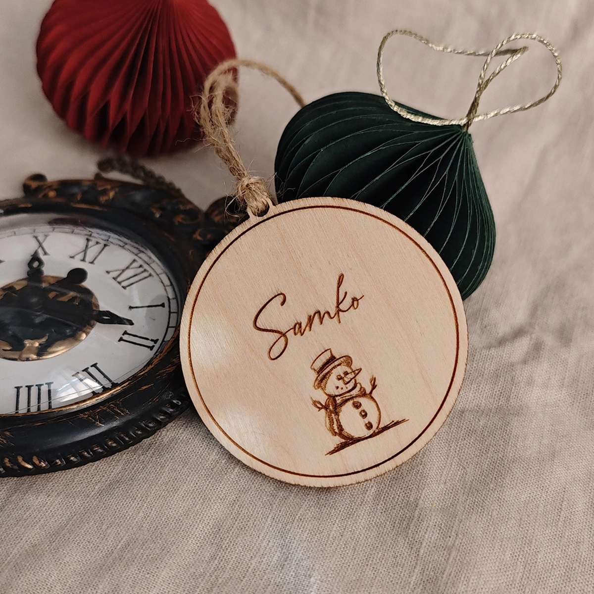 Personalizovaná ozdoba je vyrobená z preglejky hrúbky 4mm, povrch je prírodný, prebrúsený do hladka.