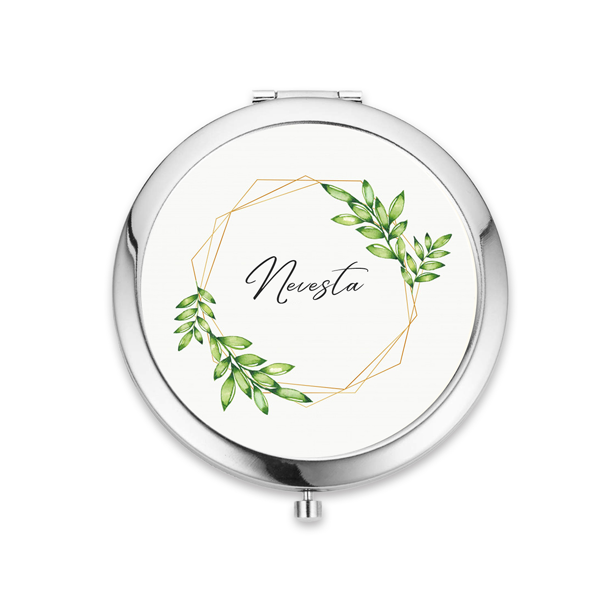 Kvalitné zrkadielko do kabelky s jednoduchým otváraním pomocou stlačenia. Zrkadielko je milým aj praktickým darčekom na rôzne príležitosti - napr. pre družičky, nevestu, svedkyňu, svadobné mamy, kamarátky, maminku, sestru a pod. Vo vnútri sú dve zrkadielka. Zrkadielko je z bižutérneho kovu bez obsahu niklu, olova a kadmia a grafický obrázok je pod vrstvou živice. Obrázok má priemer 57mm.